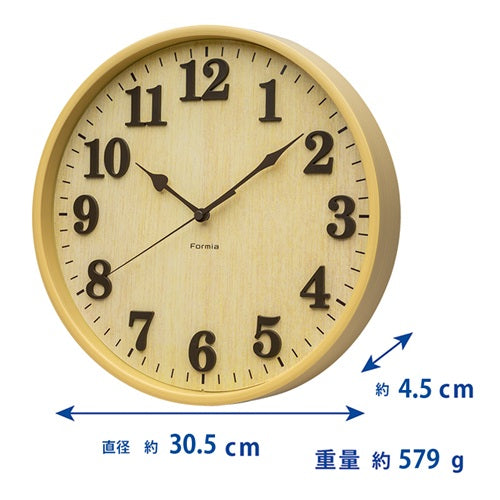 インテリア掛時計 連続秒針 立体文字盤 ナチュラル色 保土ヶ谷電子販売 HIC-012W-N
