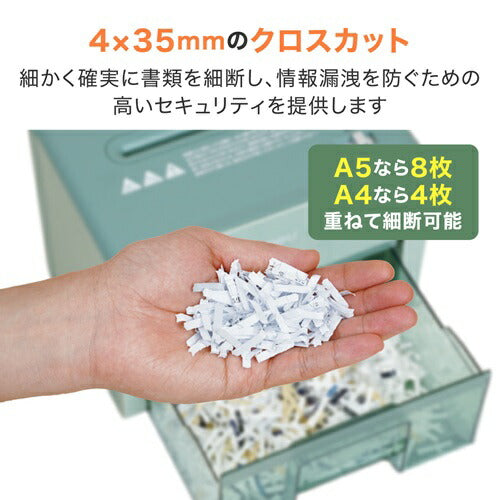 ・定格細断枚数:A5サイズ用紙(上質紙 70g/m2) 8枚