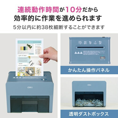 シュレッダー コンパクト 卓上型 A5サイズ ブルー DELI T925-BL