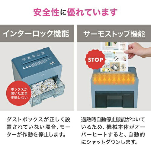 ・定格細断枚数:A5サイズ用紙(上質紙 70g/m2) 8枚