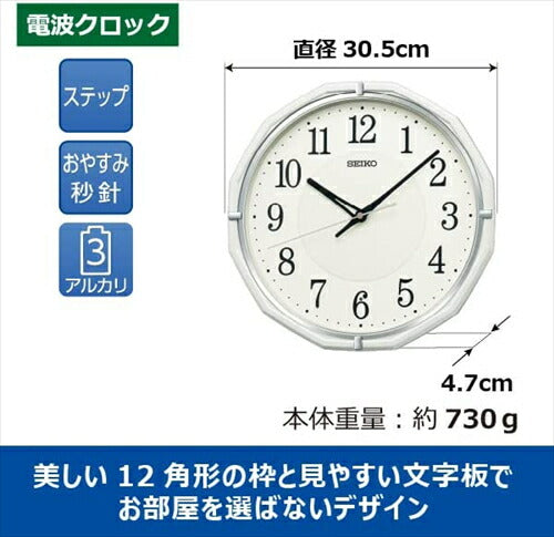セイコー セイコークロック 掛時計 電波 アナログ 白パール 305×305×47mm KX274W