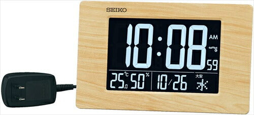 セイコー セイコークロック 置時計 掛時計 電波 薄茶木目 デジタル LED時計 120×195×24mm C3MONO シースリーモノ DL219B 掛け置き兼用