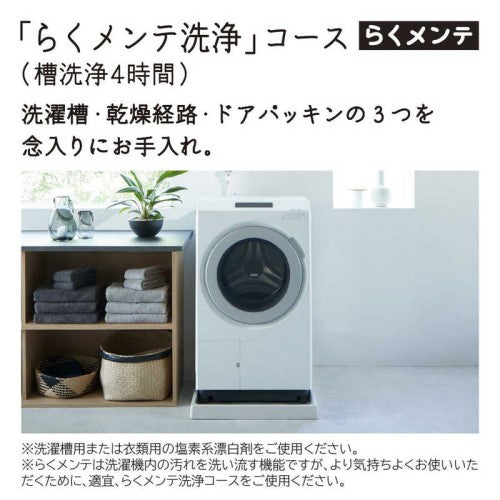 ●お手入れがしやすいラウンド形状で、お手入れの頻度は約2週間に1回でOK。また、洗濯槽・乾燥経路・ドアパッキンの3つを念入りに洗浄する「らくメンテ洗浄コース」も搭載しています。