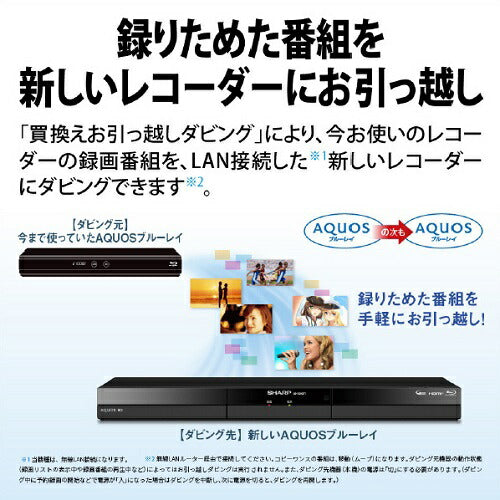 ●録画番組のジャンルに合わせて,AQUOS側で画質・音質を調整する「AIオート高画質・高音質」連動や、AQUOSの機能のようにレコーダーを操作できる「AQUOSファミリンク」など、AQUOSとセットで使うことで快適になる機能が充実。