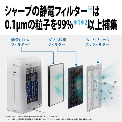 ・付属品:静電HEPAフィルター 1枚、脱臭フィルター 1枚、加湿フィルター 1枚、使い捨てプレフィルター 3枚、使い捨て加湿プレフィルター 2枚、Ag+イオンカートリッジ 1個