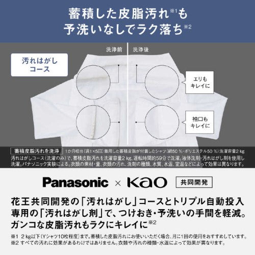 ●花王共同開発の「汚れはがし」コースとトリプル自動導入専用の「汚れはがし剤」で蓄積した皮脂汚れも予洗いなしでラク落ち。
