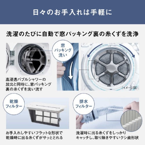 ●トップユニットのヒートポンプ式だから、大風量で省エネ&スピード乾燥。さらにシワを抑えてふんわり仕上げる。