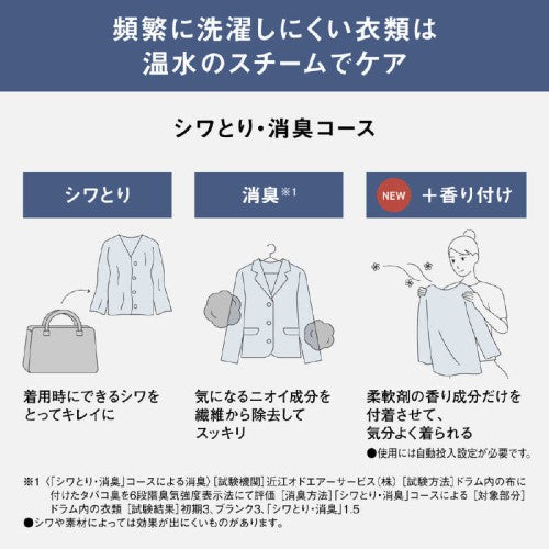 ●トップユニットのヒートポンプ式だから、大風量で省エネ&スピード乾燥。さらにシワを抑えてふんわり仕上げる。