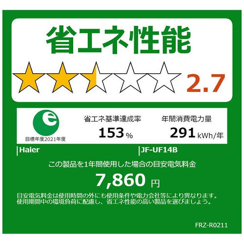 冷凍庫 135L 前開き式 ホワイト ハイアール JF-UF14B-W