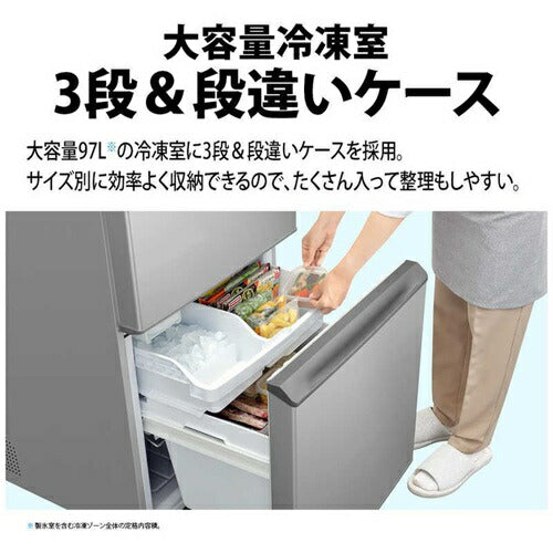 冷蔵庫 左右両開き 374L シャープ SJ-X372P-S カームマットシルバー 3ドア 真ん中野菜室 大容量 冷凍室 3段 脱臭 抗菌 省エネ 新生活 新居 使いやすい