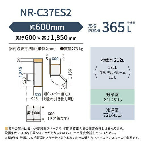 冷蔵庫 365リットル 右開き 3ドア マットベージュ パナソニック NR-C37ES2-C