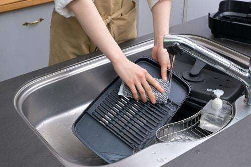 ●プレートの裏面を立体的な“X”の形状にした独自の“Xカット構造”で、油を効率的に下へ落とし、焼き肉の際に出る煙や油ハネを大幅に抑えます。