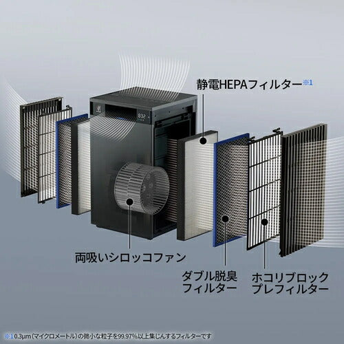 ●Wフィルター構造の採用により、コンパクトながら53畳まで対応できる大風量、かつ低騒音化を実現。