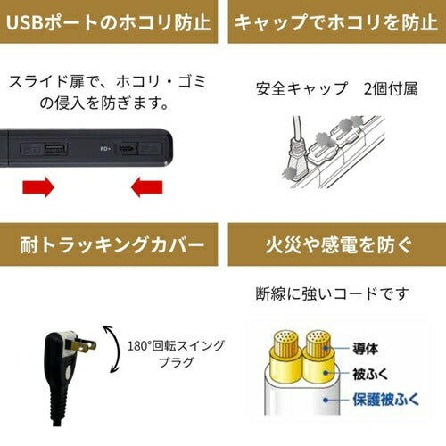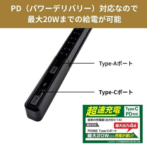 電源タップ USB 耐雷 スリム 回転USBタップ(4個口/2m/USBポート A×1、C×1) ブラック エルパ WB-RSL4222SUCBK