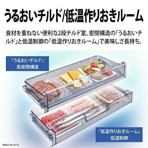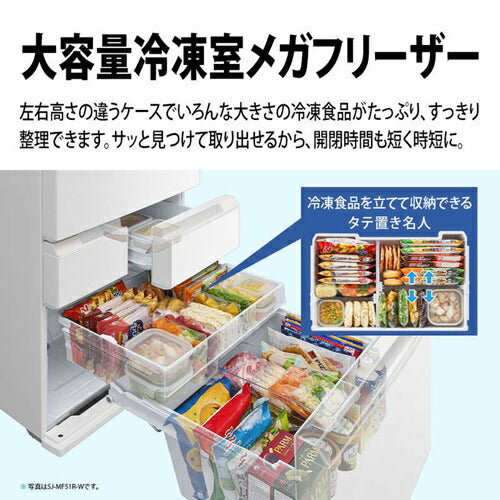 冷蔵庫 505L ピラーレスフレンチドア 観音開き シャープ SJ-MF51R(W) ブラストホワイト