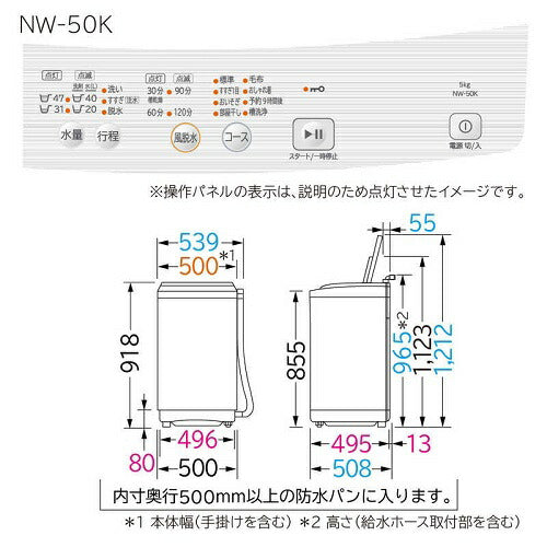 5.0kg 全自動洗濯機 ピュアホワイト 日立 NW-50K-W