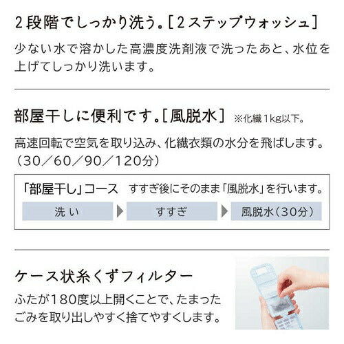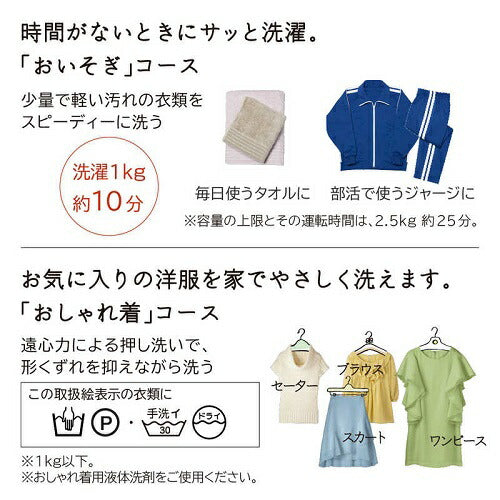 ●少量で軽い汚れの衣類をスピーディーに洗う「おいそぎ」コース(1kgなら約10分)。