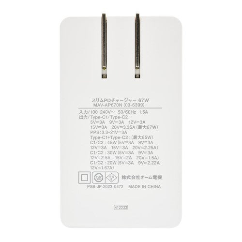 AudioComm スリムPDチャージャー 67W オーム電機 MAV-AP670N