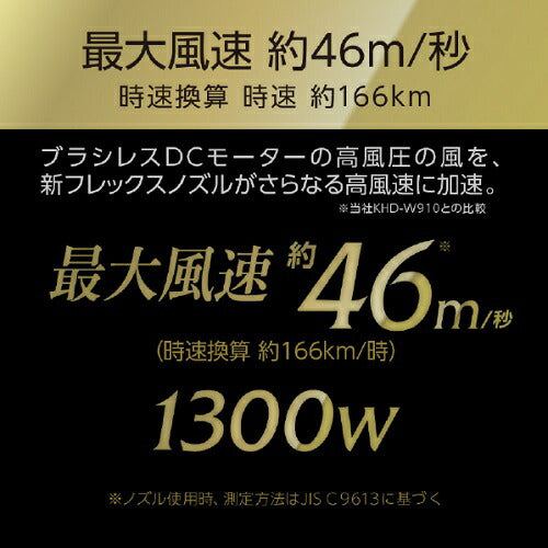 ●最大風速約46m/秒。風速約1.8倍、風圧約2.0倍(KHD-W910比)、BLDCモーター搭載。