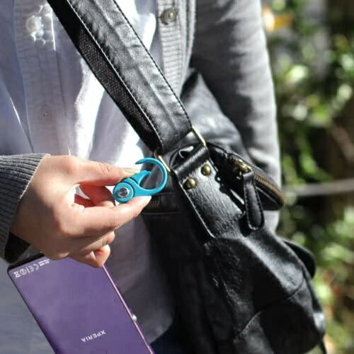 さらに、リングストラップはカラビナとしても使用でき、カバンやベルトループに引っ掛けて使えます。