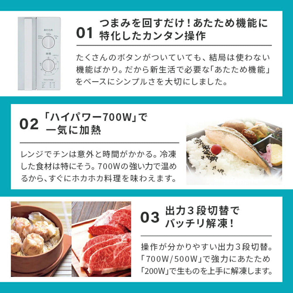 | 電子レンジ出力 | 700W・500W・解凍(200W相当) |